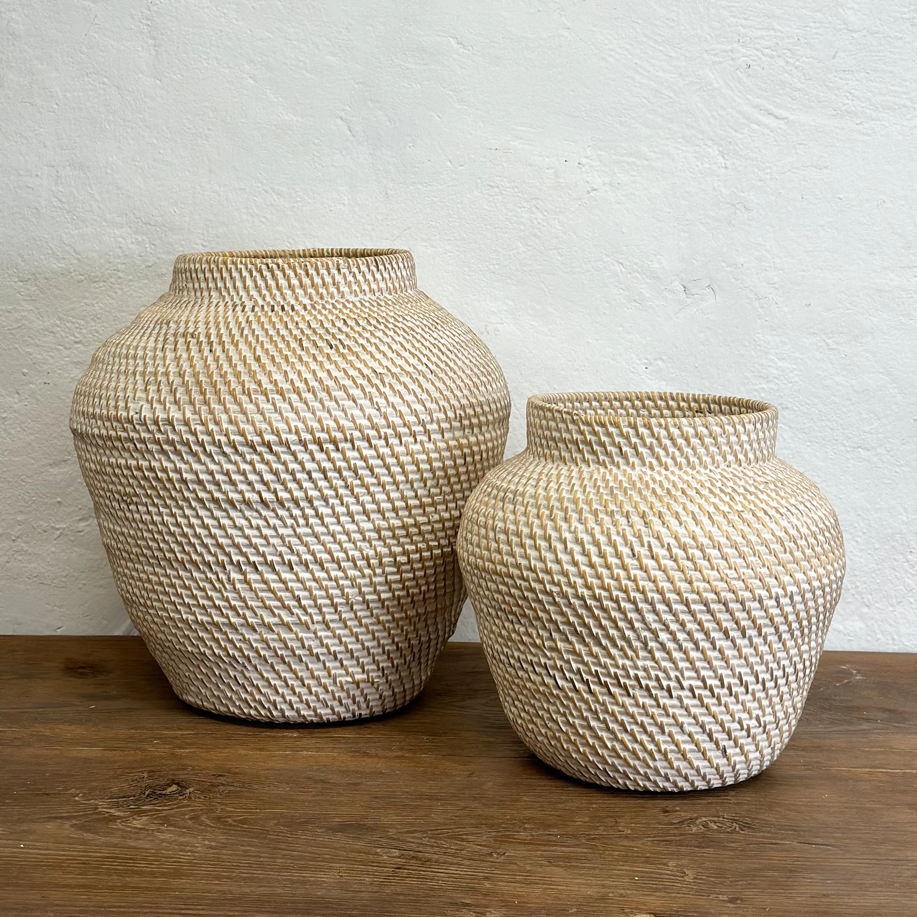These lovely handwoven urns have a sculptural quality and would be decorative as single subjects or as a group. And then of course they would equally look amazing with branches of fresh or dried foliage.