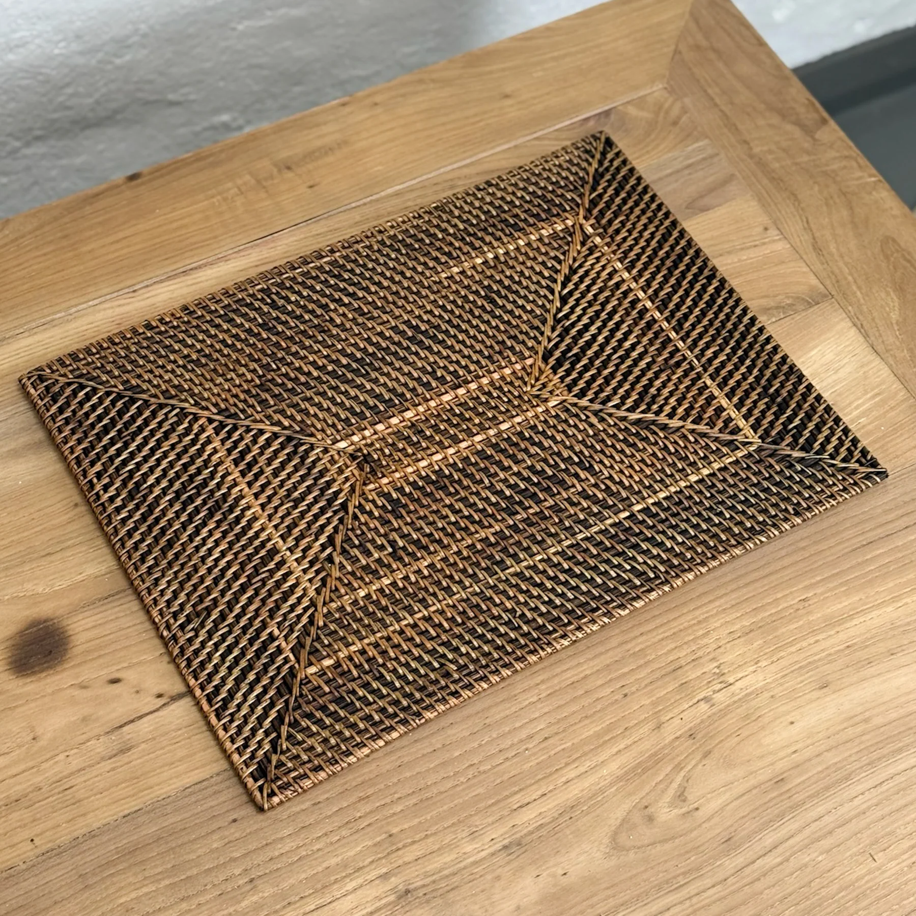 Simple and refined, these rectangular rattan placemats are handcrafted in Bali using traditional weaving techniques. Their organic texture adds warmth to contemporary or rustic table settings, offering a grounded, timeless feel. Available in three colours.