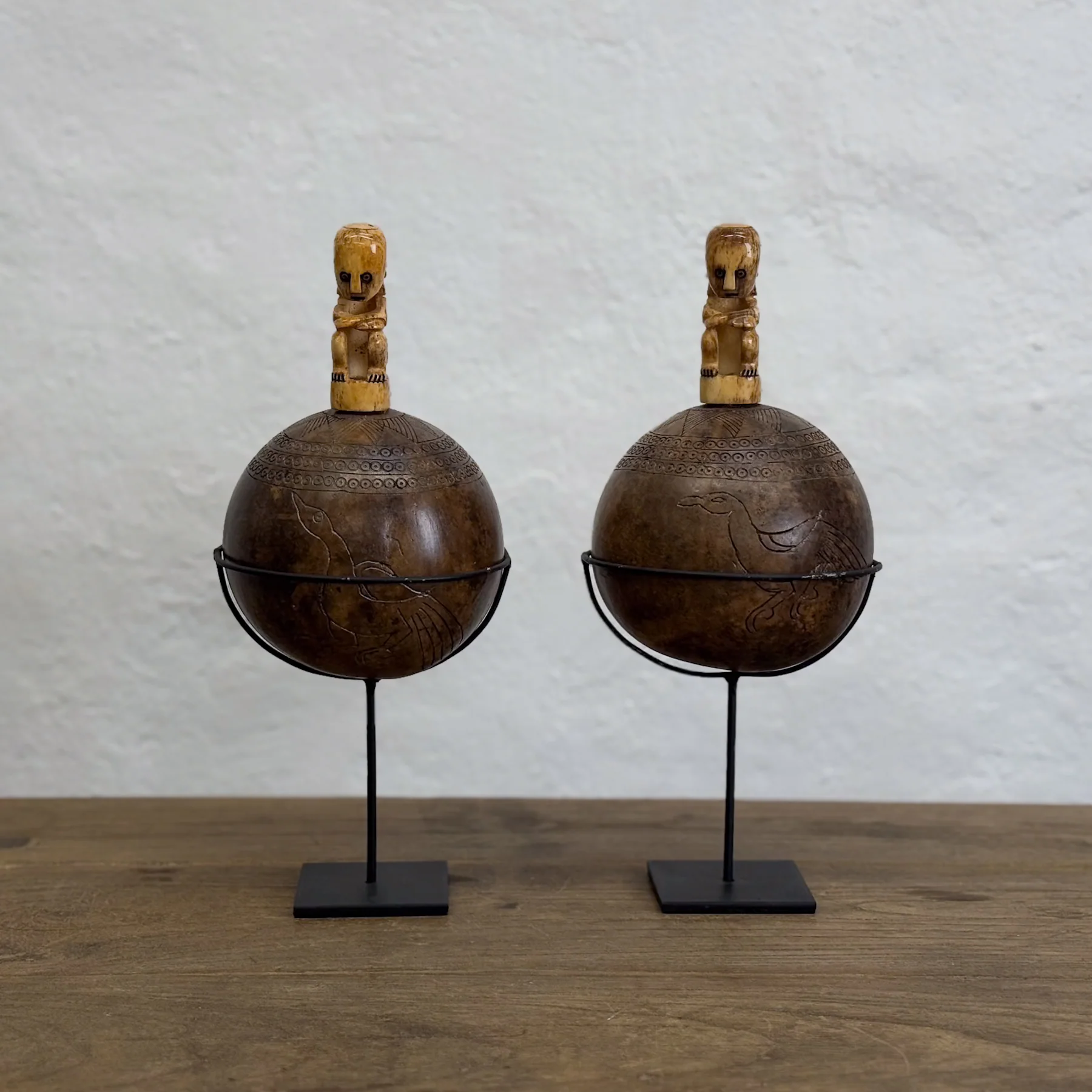 These small but fascinating artefacts assembled from found organic and sustainable sources and then incorporated into a small carving, tastefully mounted, it is a timeless and versatile decorative object in an eclectic or even minimalist setting.